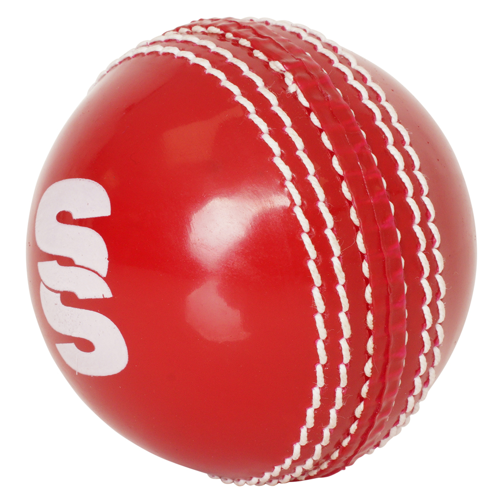 PVC ball with hand stitched seam. Same size as normal cricket ball perfect for practice and indoor use.